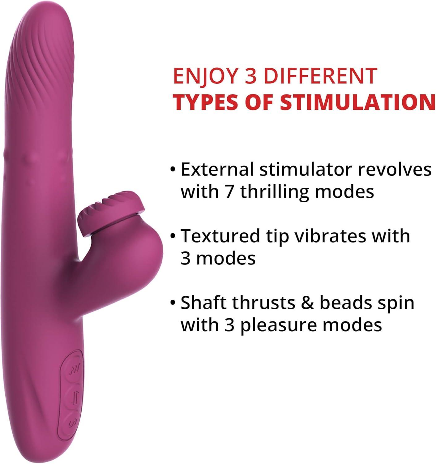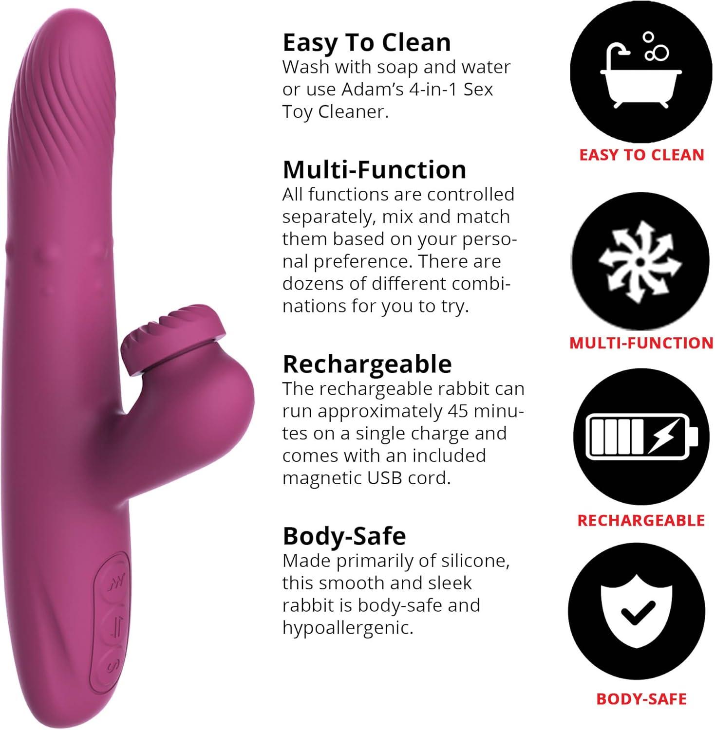 Adam & Eve Rose Gold Revolving Spinning Dual Stimulating Rabbit, 7 Function Revolving Clit Stimulator, 3 Speed Thrusting Shaft, 3 Mode Vibrating Tip, Spinning Beads, Rechargeable, Waterproof, Silicone