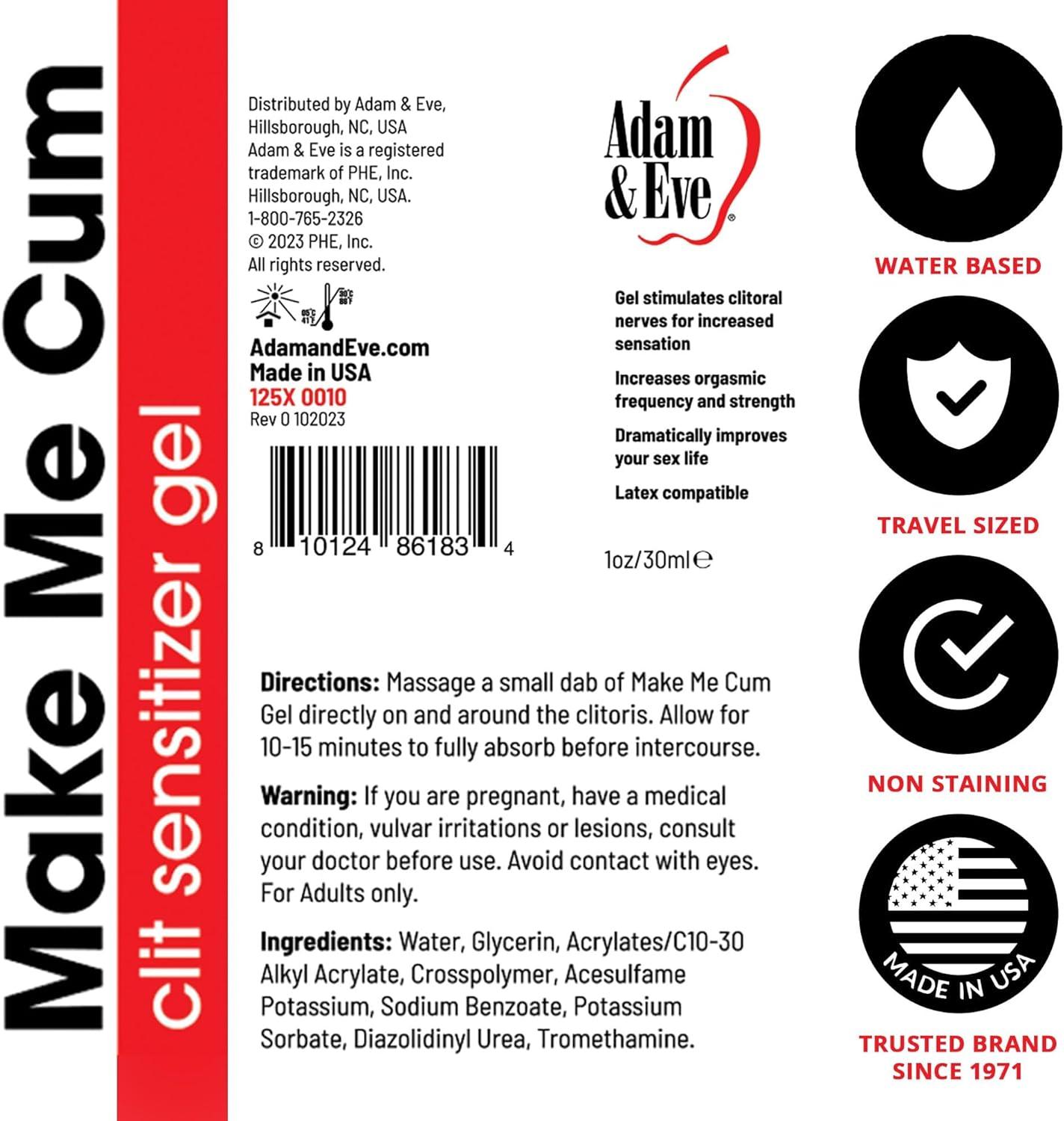 Adam and Eve Make Me Cum Water Based Clitoral Sensitizer Gel, Personal Lubricant for Women, Enhances Sensitivity for Stronger Orgasm, Use with Privacy and Toys, Lube for Masturbation, 1 oz 2 Pack(1oz (Pack of 2))