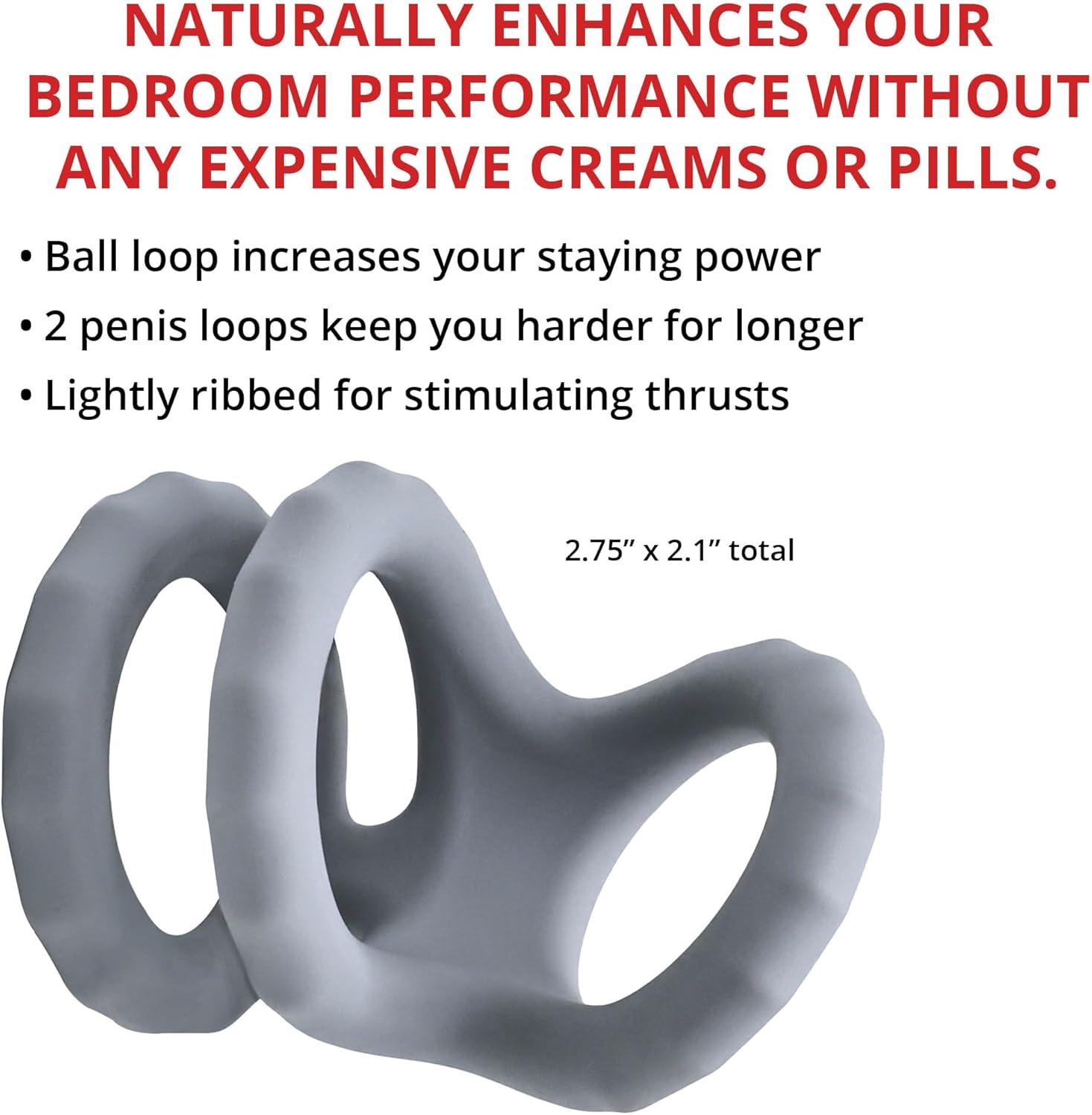 Adam & Eve Adam’s Silicone Triple Ring Cage, 3 Soft Snug Loops for Enhanced Erection Support, Ball & Shaft Penis Rings, Hypoallergenic Ribbed Design, Lasting Performance, 2.75 x 2.1 inches