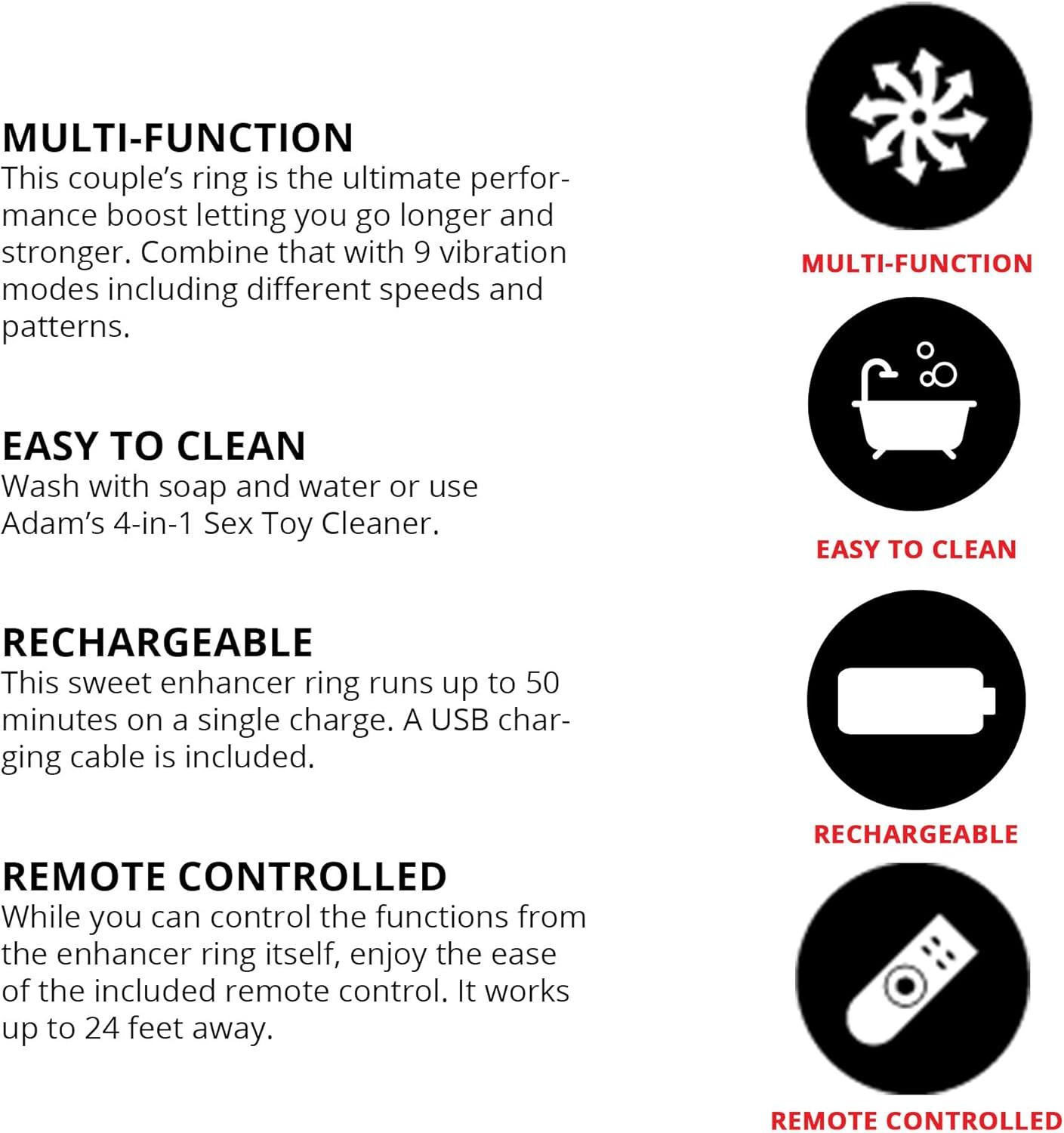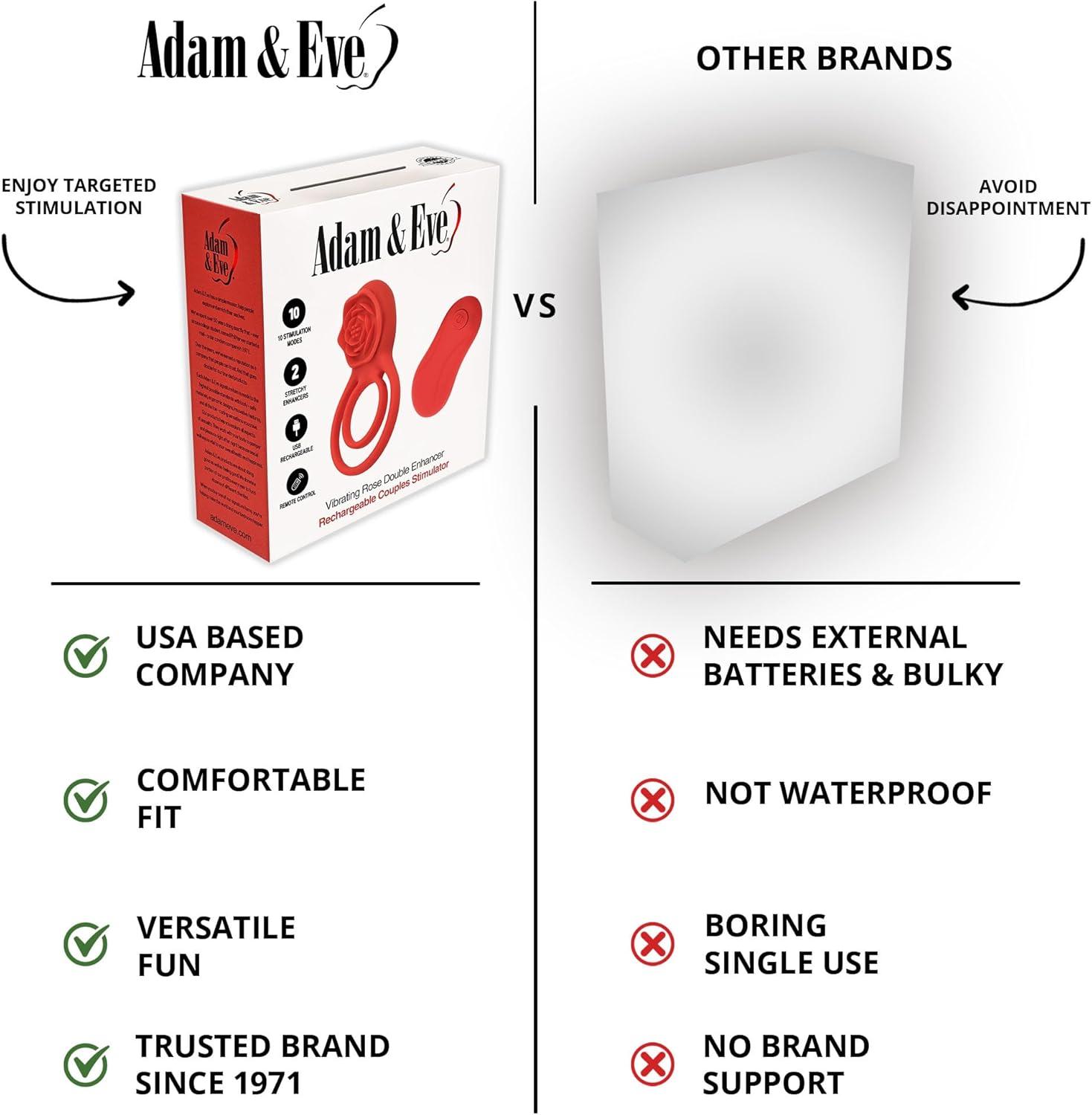 Adam & Eve Double Ring Vibrating Rose Cockring, Penis Rings with 9 Vibration Modes, Remote Control, Stretchy Silicone, Enhances Performance, Boosts Hardness, Waterproof, Rechargeable, Couples Toy
