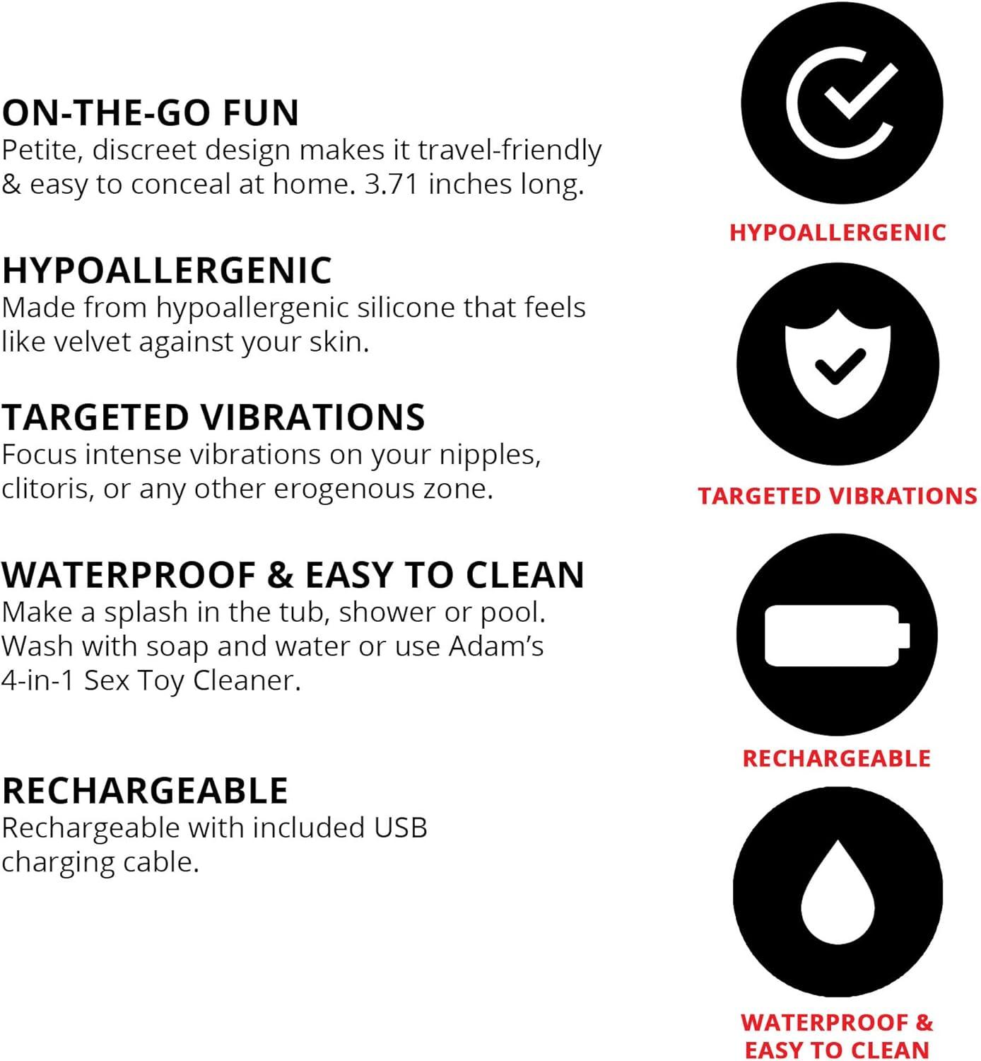 BARELY 4 INCHES TALL, this silky silicone bullet fits easily in your hand for total control, especially near, around and for the clitoris. Want some toe-curling fun? See what happens when you pass it to your partner during foreplay & lovemaking to heighten your sexual pleasure.