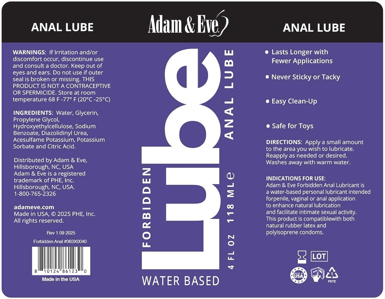 Adam & Eve Forbidden Anal Lubricant, Water Based Anal Gel for Privacy and Toys, Long Lasting Non Sticky Smooth Texture, Comfortable Anal Play, Safe for Women Men Couples, 8 oz Bottle, Gentle Formula(4 oz Lube)