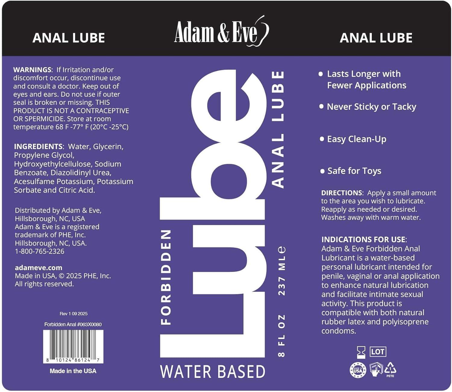 Adam & Eve Forbidden Anal Lubricant, Water Based Anal Gel for Privacy and Toys, Long Lasting Non Sticky Smooth Texture, Comfortable Anal Play, Safe for Women Men Couples, 8 oz Bottle, Gentle Formula(8 oz Lube)