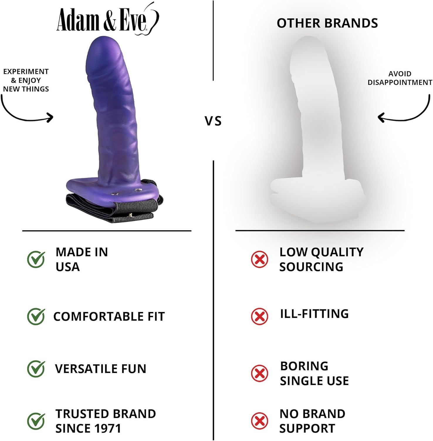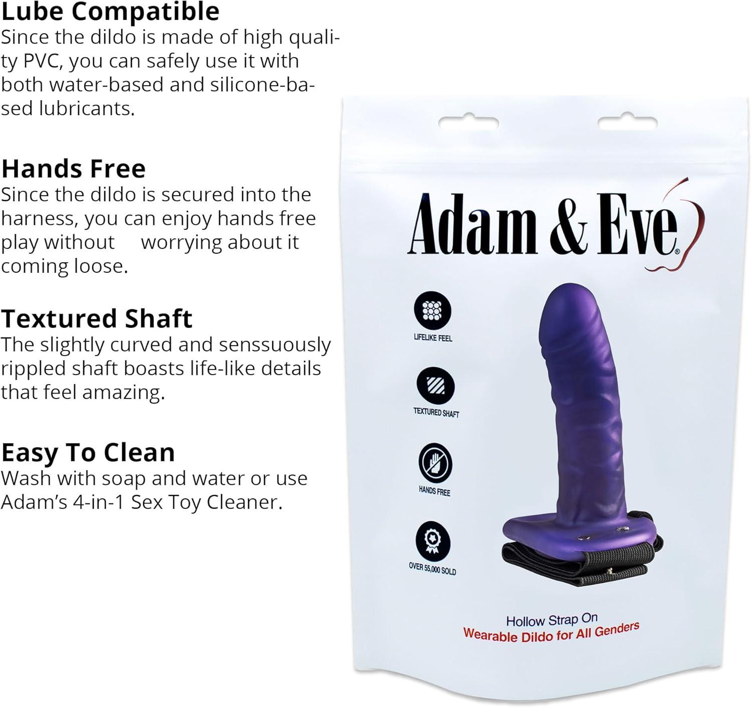Adam & Eve Hollow Strap On Dildo, Adjustable Wearable Harness with Penis Sleeve to Enlarge, Strap On Realistic Cock Extender for Pegging, Adult Sex Toys for Men, Women & Couples, 6 in, Purple