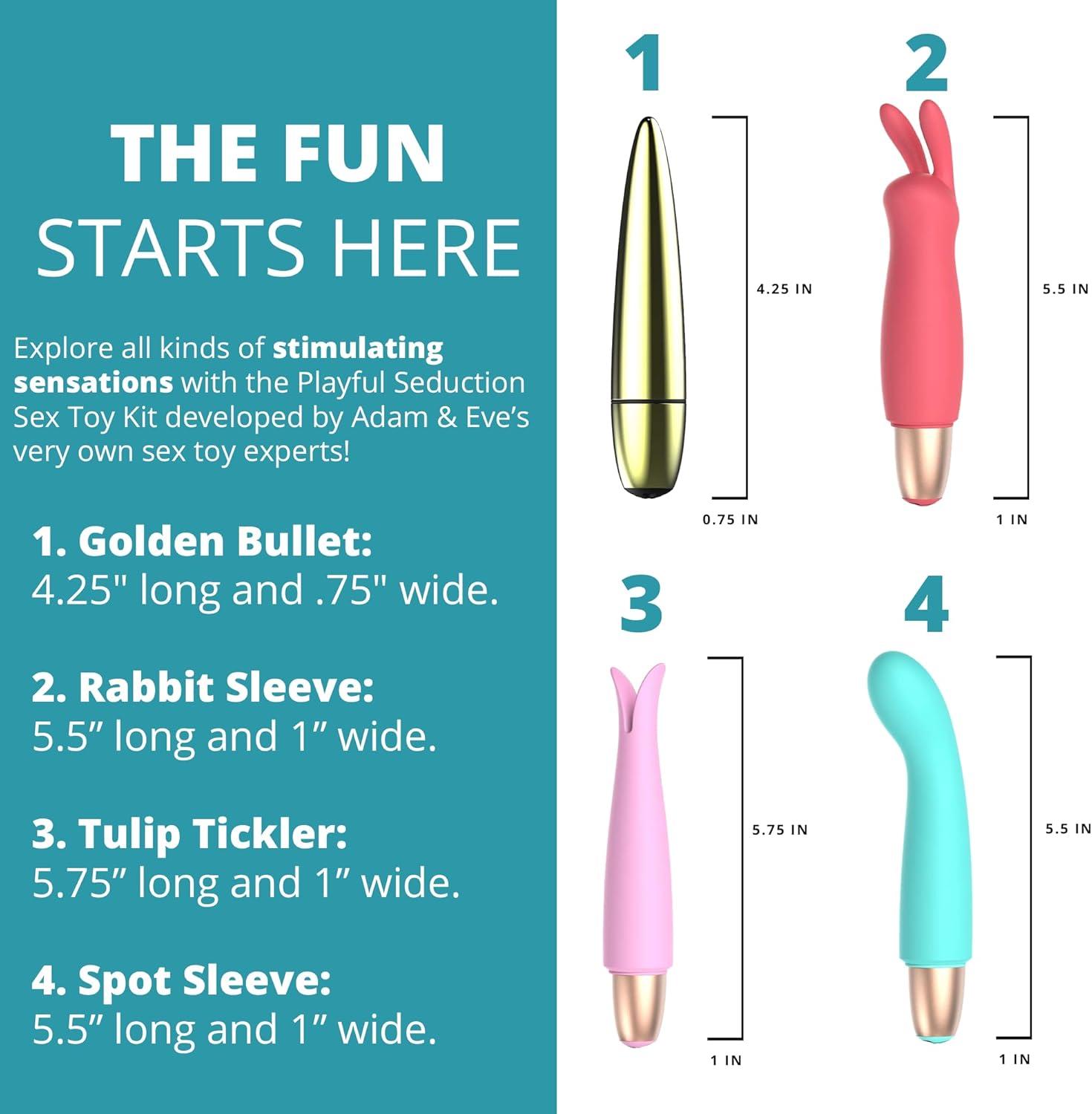 Adam & Eve Playful Seduction Sex Toy Kit, Bullet Vibrator & 3 Silicone Sleeves, Adult Sex Toys for Women & Couples, 10 Vibration Modes, G Spot Stimulation & Pleasure, Water Based Lube Compatible