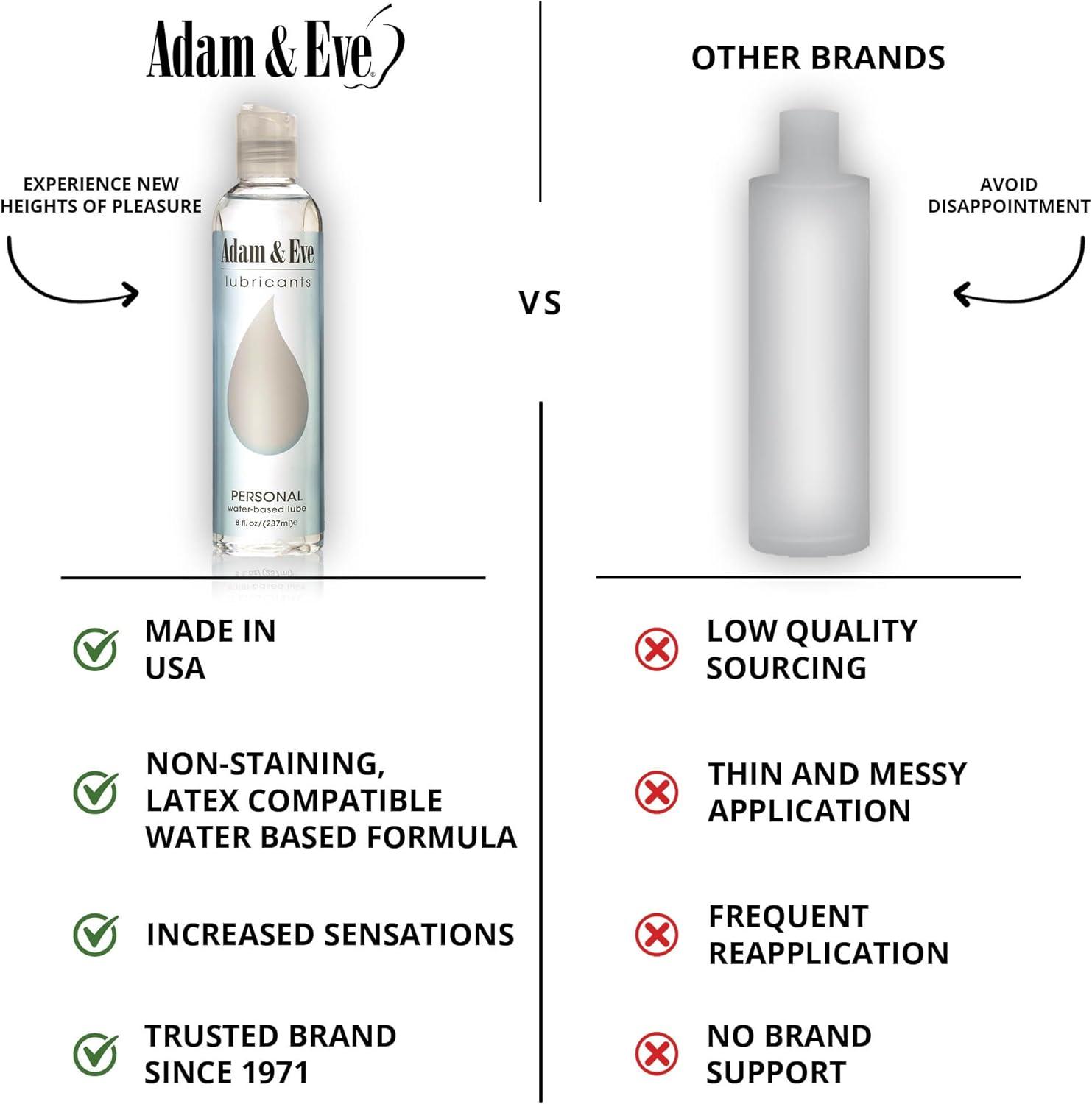 TRUSTED USA BRAND since 1971, Adam & Eve is committed to providing high-quality lubricants and superior customer service. Join over 10 million satisfied customers and elevate your pleasure with Adam & Eve's Premium Water Based Lube.
