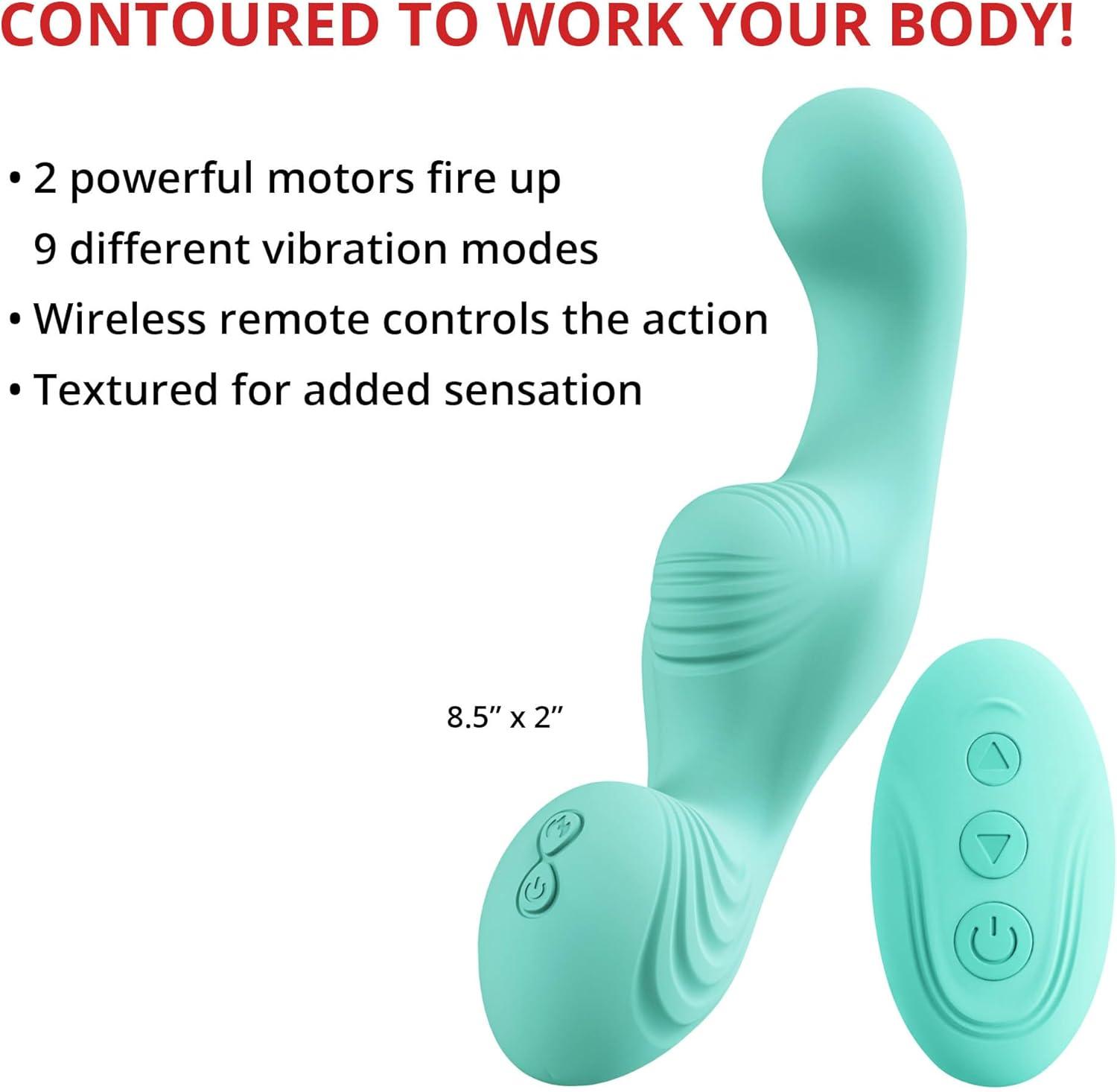 POWERFUL VIBRATIONS WITH 9 MODES: Dual motors create deep, satisfying rumbles. Cycle through 9 modes, including steady speeds and pulsating patterns. Use the included wireless remote control for hands-free fun and seamless, uninterrupted transitions between sensations.