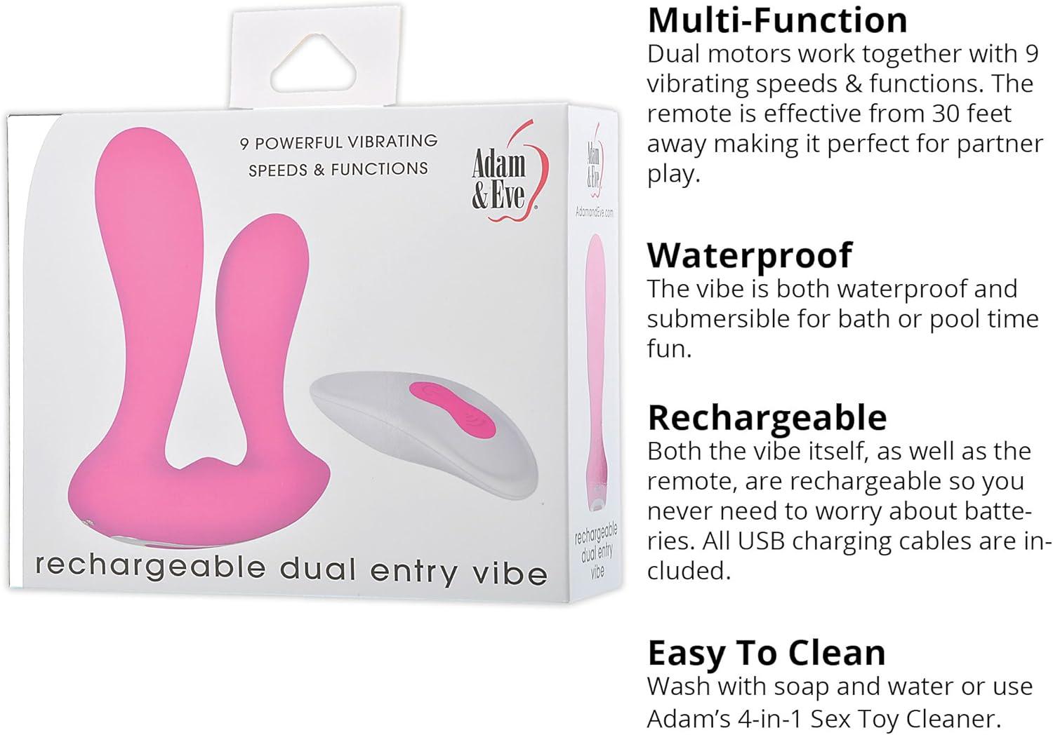 • Adam & Eve Dual Entry Vibrator with Remote Control, Rechargeable Double Penetration Vibrator with 9 Speeds and Functions, Flexible Silicone Design, Waterproof, USB Magnetic Charging, Couples Play