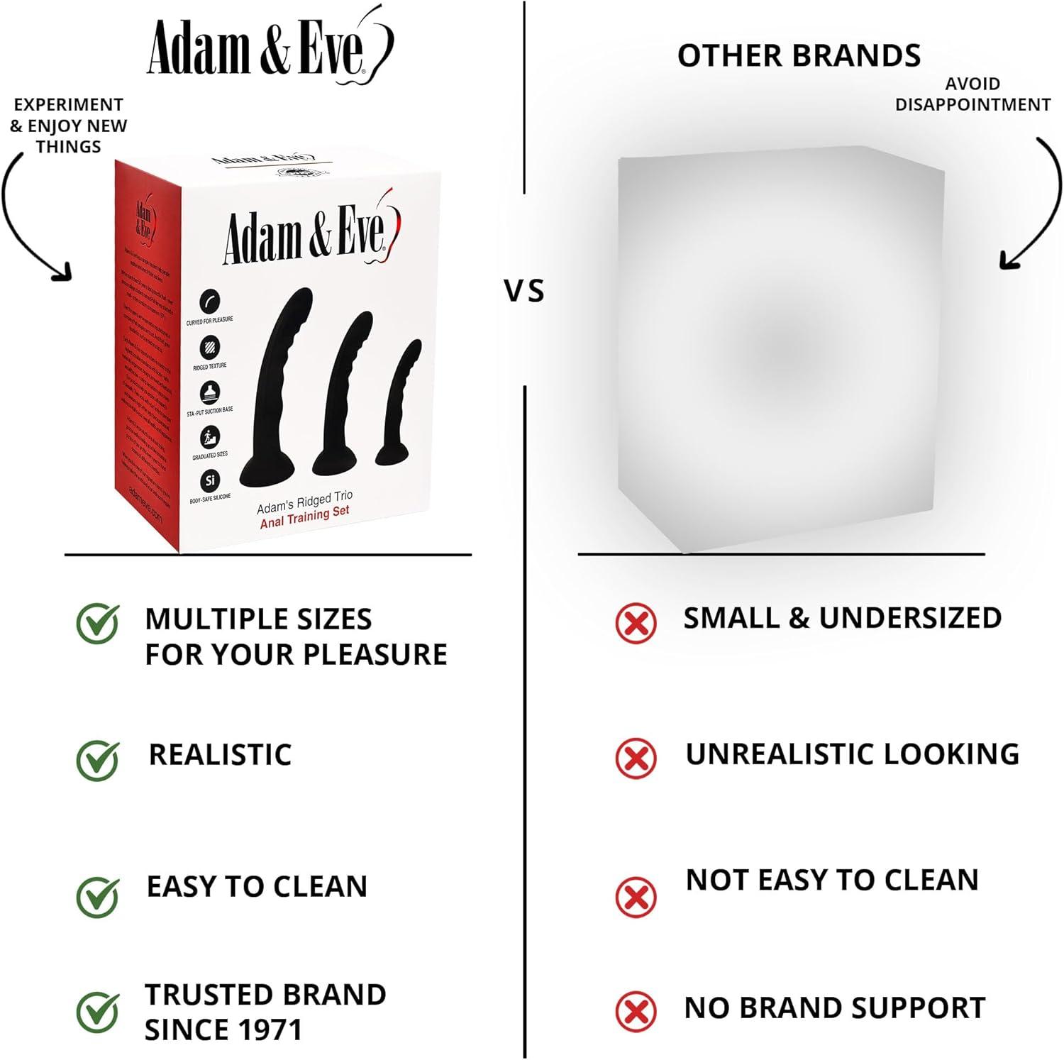 Adam and Eve Prostate Massager Training Set, 3 Piece Silicone Anal Trainer Kit for Men, Sizes Textured Prostate Massagers with Curved Tip and Strong Suction Base, Beginner to Expert Anal Sex Toys