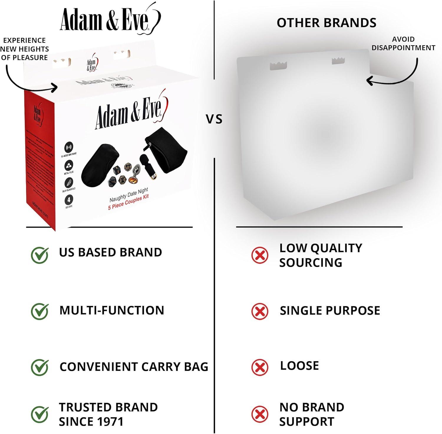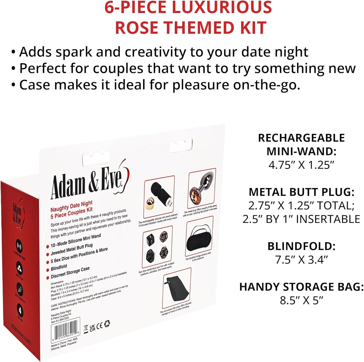 Adam and Eve Naughty Date Night Kit, Couples Sex Toy Set with Rechargeable Mini Wand, Metal Plug, Foreplay Dice, Sex Position Dice, Blindfold and Storage Case for Romantic Adult Bedroom Games